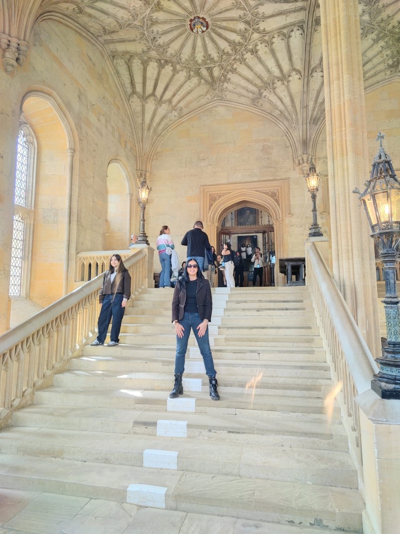 Dernier jour de cette étape, Oxford ! Nous entrons dans Trinity Church, sans doute le collège anglais le plus célèbre qui soit, et gravissons les marches... de Poudlard ! Oui, les marches mêmes depuis lesquelles McGonagall accueillait les nouveaux élèves à l'École de sorcellerie et de magie ! Se promener dans la salle à manger, encore utilisée aujourd'hui par les étudiants, c'est comme se promener dans la Grande Salle décrite par Rowling dans ses célèbres livres. La ville entière est une plongée dans l'histoire.