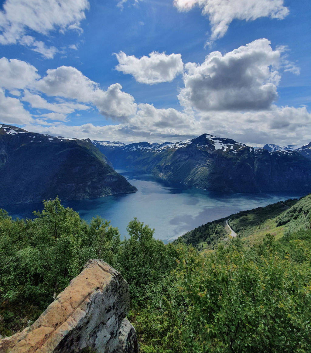 Il existe plusieurs itinéraires pour se rendre d'Ålesund à Geiranger, mais mon préféré est de passer par Strandafjellet jusqu'à Hellesylt et de prendre le ferry pour traverser le fjord. En voyant la longueur du fjord depuis l'eau, on comprend pourquoi Geiranger figure sur la liste du patrimoine mondial de l'UNESCO.