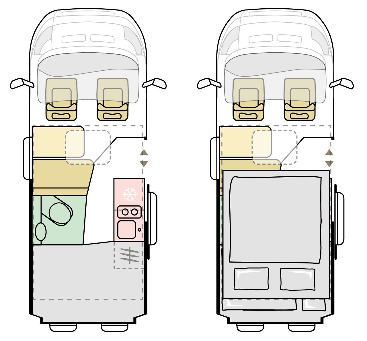 • Lit transversal à l'arrière, rabattable pour accéder au garage
