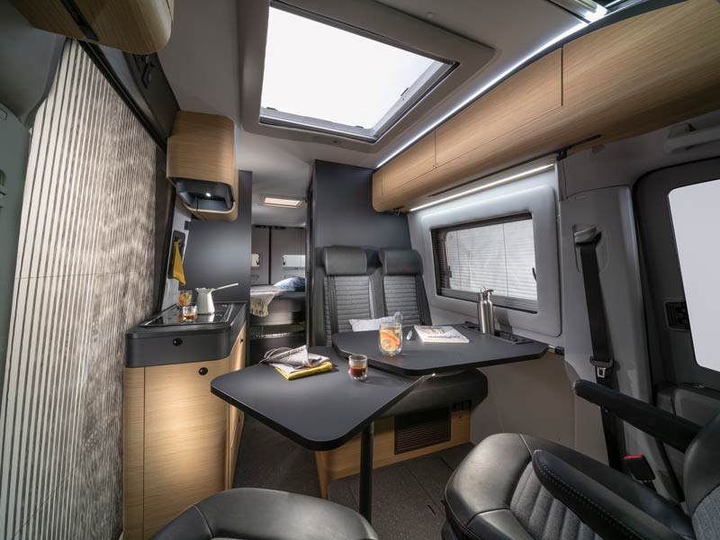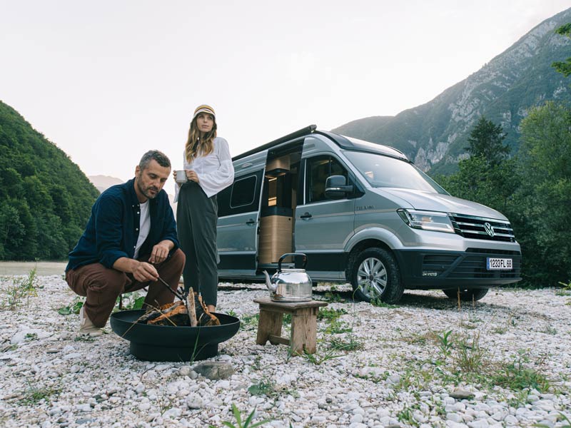 Les vans Twin Max offrent notre nouveau design intérieur Fluent et un niveau de confort haut de gamme dans un style ouvert, avec plus d'espace qu'un camping-car classique, sur le Volkswagen Crafter, dans un choix de longueurs et d'aménagements. 4 places assises, 2 couchages. La disponibilité varie selon les pays.