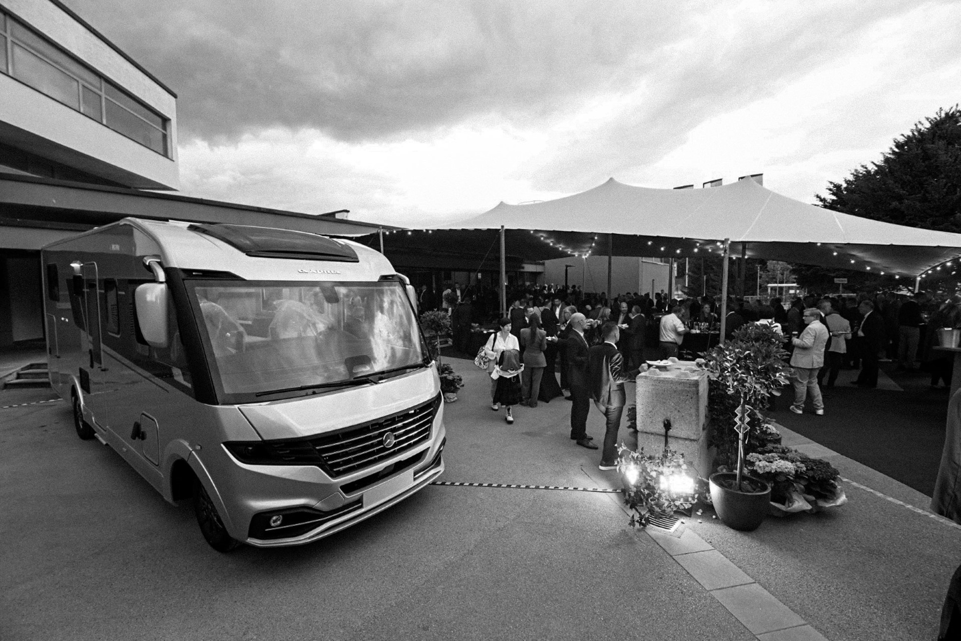 Avec des centaines d'invités, allant des représentants du gouvernement aux dirigeants du groupe Trigano, en passant par des journalistes, des distributeurs de longue date et des fournisseurs clés, la liste des invités est devenue un organisme vivant à part entière. Nous n'avons pas utilisé de plans de table rigides, mais avons plutôt opté pour une interaction organique, convaincus que l'atmosphère susciterait naturellement les bonnes conversations. Et cela a été le cas. Des relations ont été renouées, de futurs partenariats ont vu le jour et les anecdotes ont circulé de table en table. Et ces parapluies ? Ils attendaient toujours patiemment dans les coulisses. À la fin de l'événement, ils ont enfin eu l'occasion de nous montrer à quoi ils servaient vraiment.