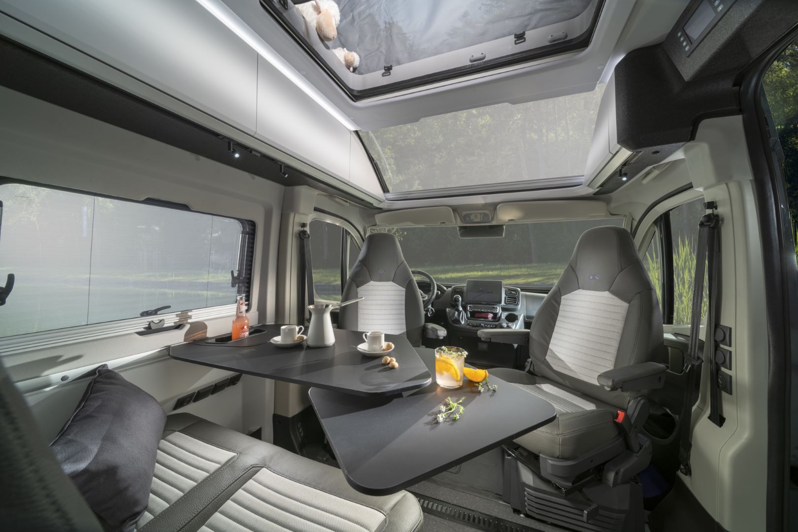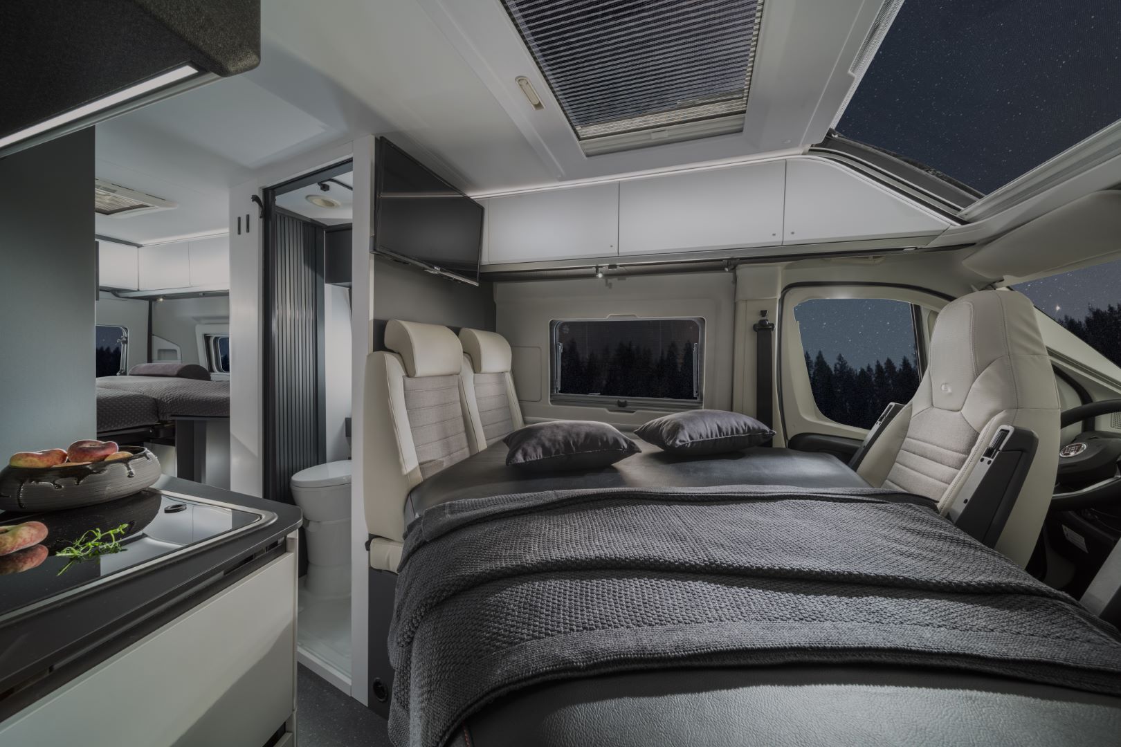 Le nouveau Twin Supreme introduit des intérieurs ouverts de type « cabine-loft » et un toit ouvrant panoramique. Il devient le chef de file du design, le campervan de référence.